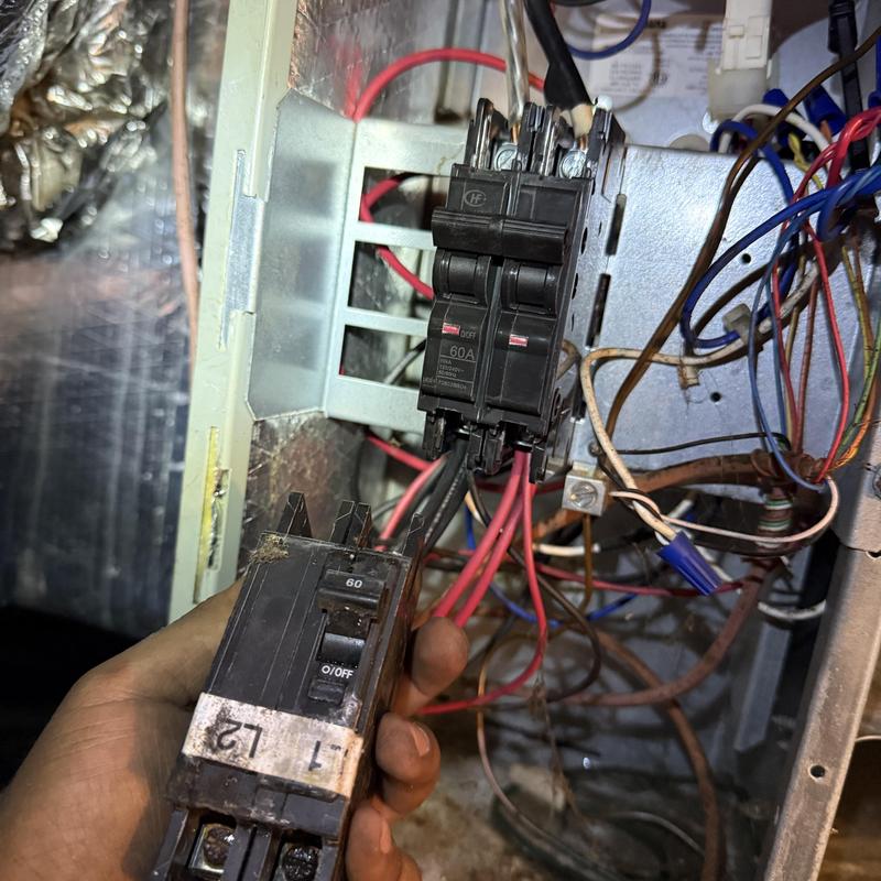 Technicians replaced a faulty breaker on a Friedrich air handler to restore proper function in Hickory, North Carolina. The repair ensured the HVAC system now operates reliably and safely.