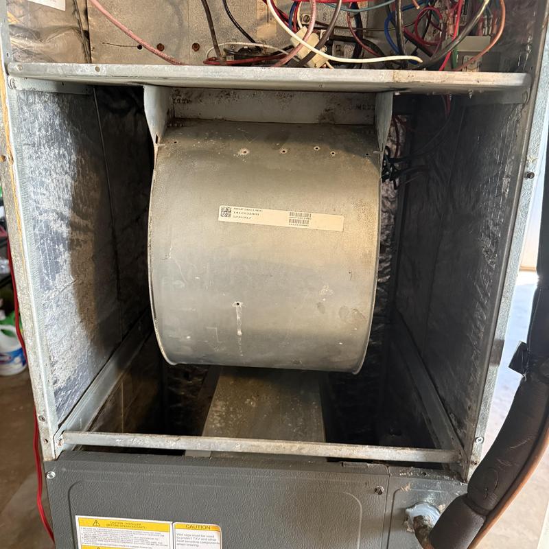 Taylored Air removed a blockage from a blower wheel caused by a mouse in a residential HVAC unit in Huntersville, North Carolina. The technician cleared the obstruction, reinstalled the blower wheel, and confirmed that the system operates correctly.