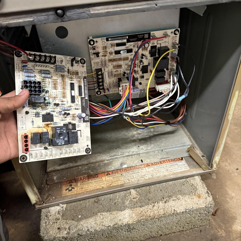 A technician replaced a faulty furnace control board on a Coleman unit that was not activating the blower during air conditioning use. The repair restored proper cooling. This HVAC service took place in Lincolnton, North Carolina.