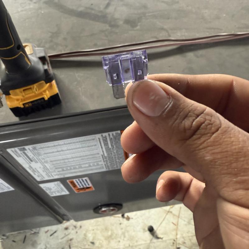A technician in Lincolnton, North Carolina replaced a blown fuse in a 5-ton Rheem HVAC system after a thermostat failure. This repair restored proper cooling function and returned the system to normal operation.