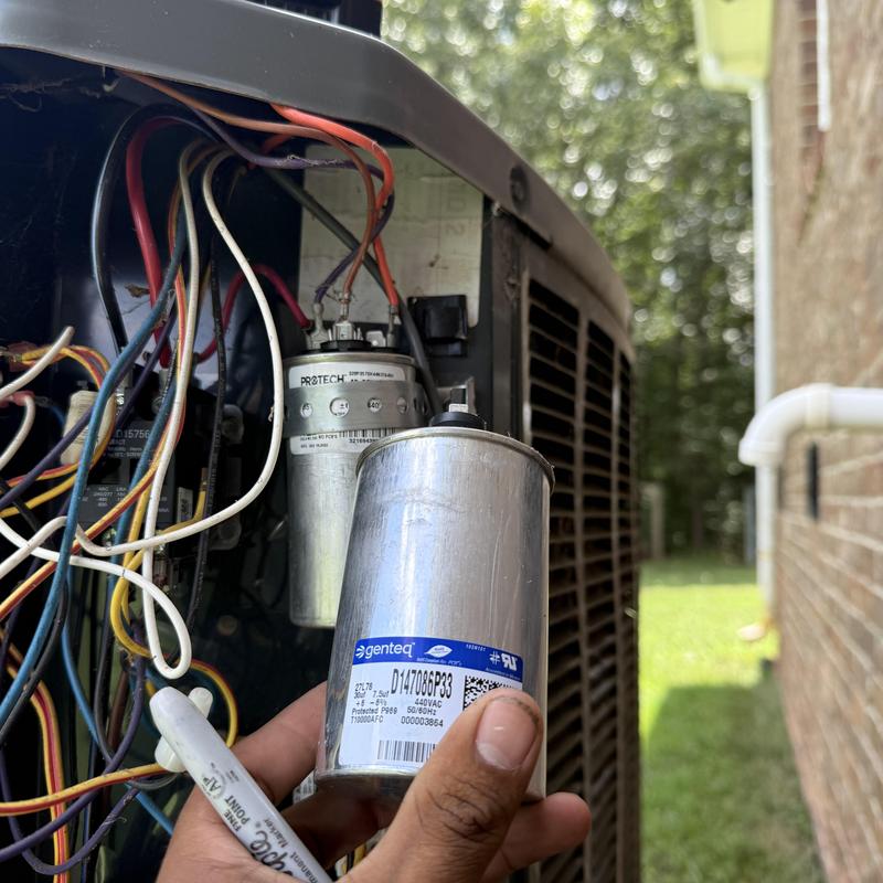 A technician replaced a failed capacitor on a Trane HVAC system to restore proper cooling in Gastonia, North Carolina. The system resumed normal function after the repair. This service resolved a cooling issue and ensured the air conditioning unit provided consistent performance during hot weather.
