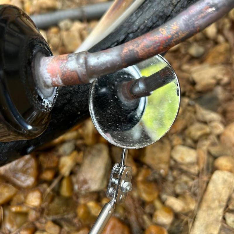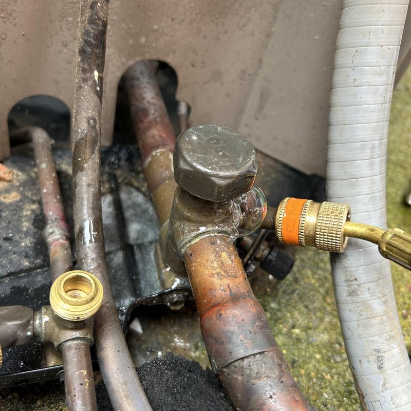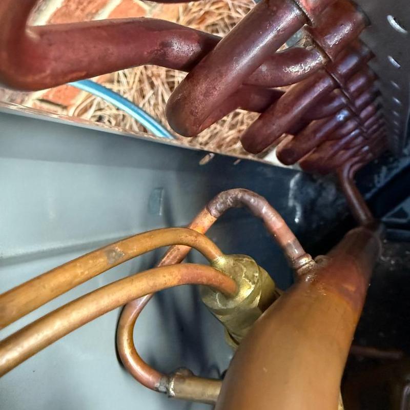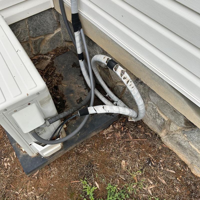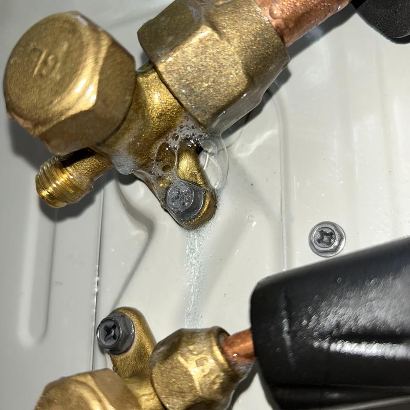 A technician identified a refrigerant leak at the flare nut connection on a mini split system in Lincolnton, North Carolina. This service ensures proper system performance and helps prevent further cooling issues.