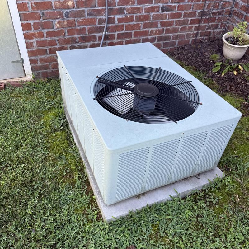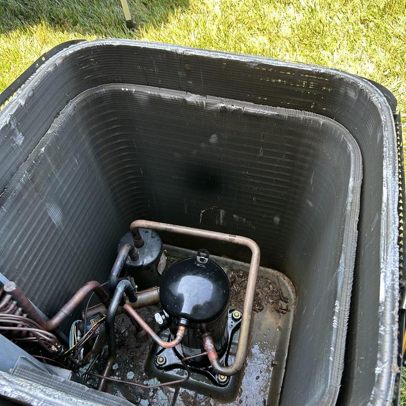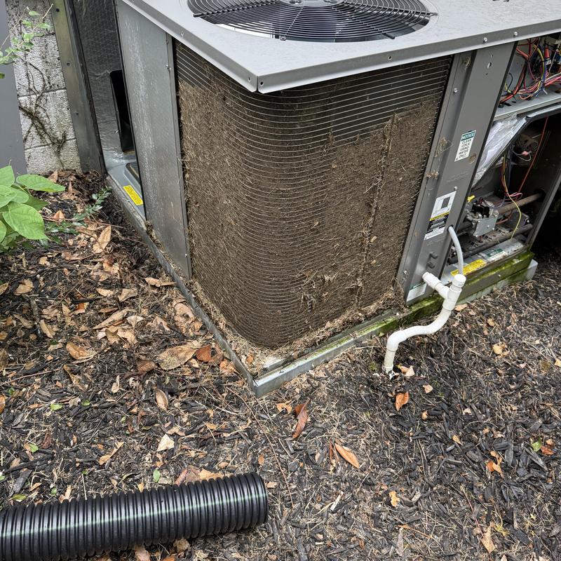 TAYLORED AIR completed comfort plan maintenance in Lincolnton, NC, including outdoor coil cleaning on a new HVAC unit to improve energy efficiency and extend system lifespan during the fall season.