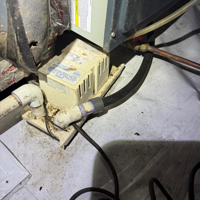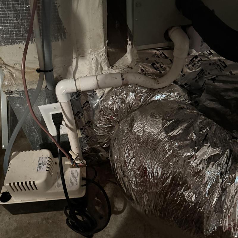 A technician in Lincolnton, North Carolina, resolved an HVAC issue caused by an unplugged condensate pump. The system had shut off after filling with water. After reconnecting the pump, the system resumed normal operation.