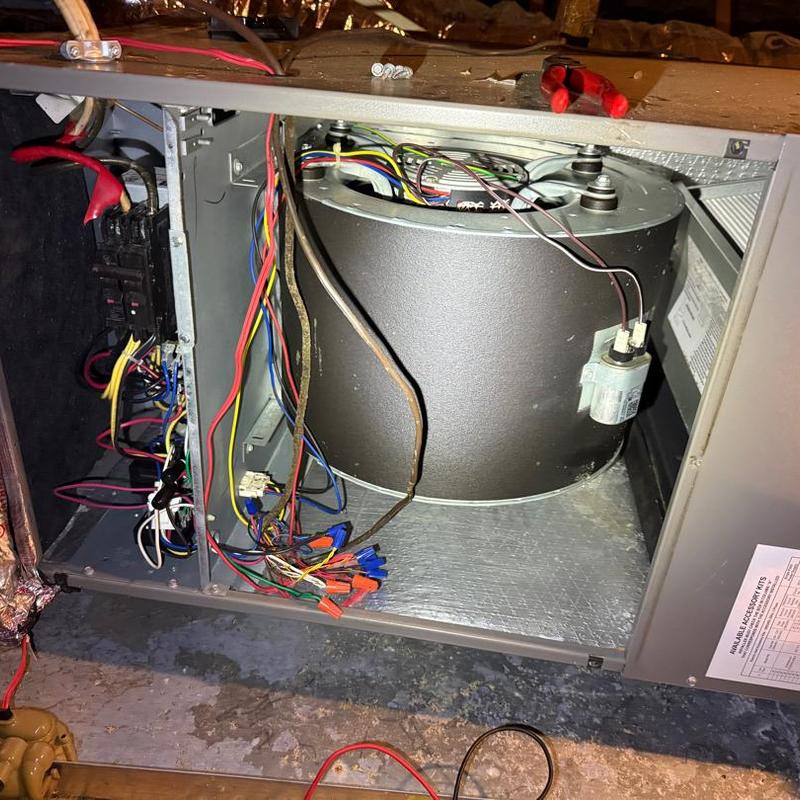 A technician from Taylored Air replaced a failed blower motor to restore proper cooling in a residential HVAC system in Lincolnton, North Carolina. The system is now functioning correctly and providing effective air circulation.