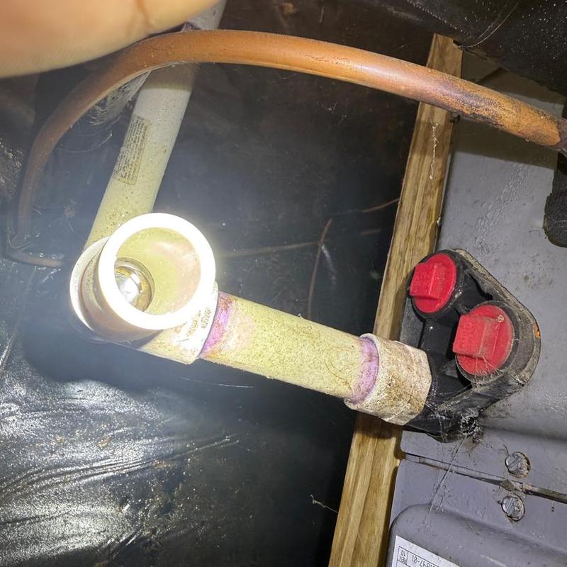 Taylored Air cleared a blocked drain outlet and installed a P-trap with a clean-out in Lincolnton, North Carolina. The drainage system now works correctly and flows without obstruction.