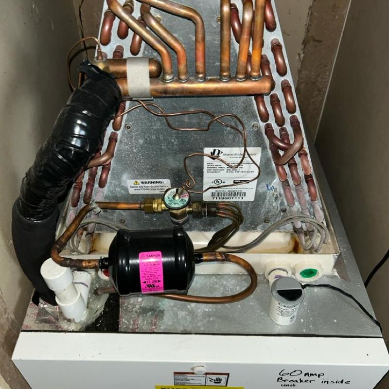 A technician in Cherryville, North Carolina replaced a faulty Phenomenal Aire unit, installed inline fuses, and confirmed the air conditioning system is operating properly.