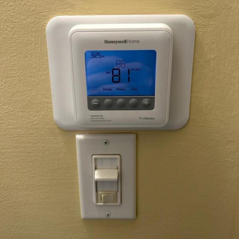 Taylored Air replaced a thermostat and tested auxiliary heat and defrost mode in Lincolnton, North Carolina. The technician confirmed the system functioned correctly, refrigerant levels were normal, and the evaporator coil was clean. The customer enrolled in a pro maintenance plan.