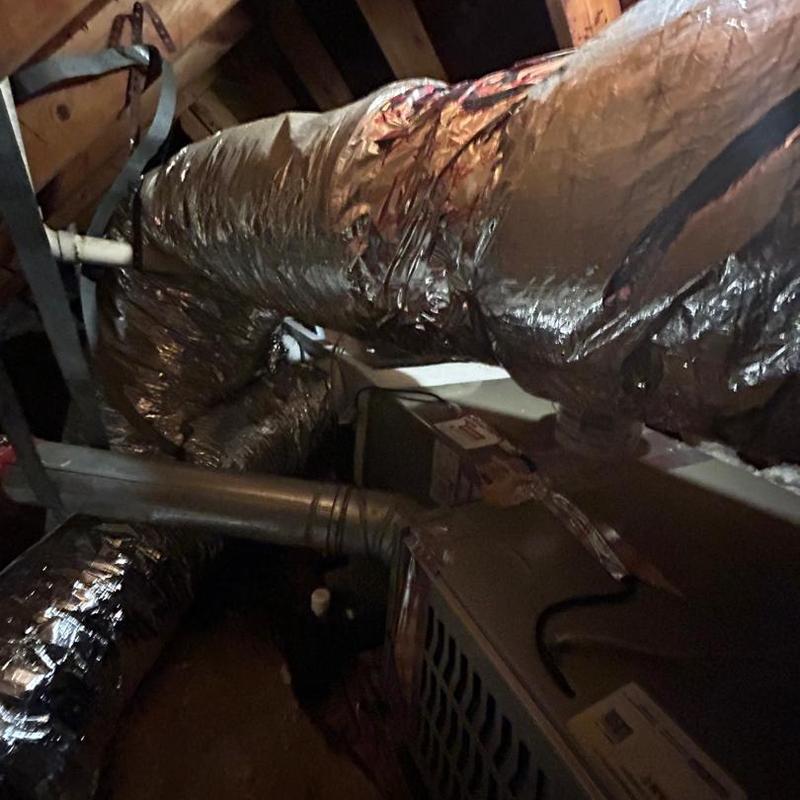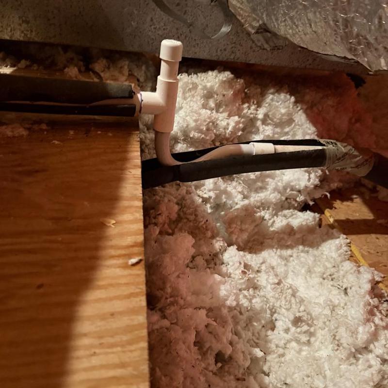A technician cleared a clogged and overflowing HVAC drain line in Newton, North Carolina. They vacuumed the blockage, flushed the line with water, and confirmed the system was cooling properly. This service restored normal drainage and prevented further water buildup.