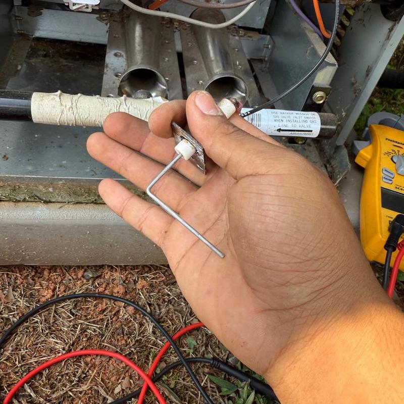 A technician in Lincolnton, North Carolina cleaned the flame sensor and pressure switch port on a heating system. They also adjusted the gas pressure to the recommended level. The system is now working properly.