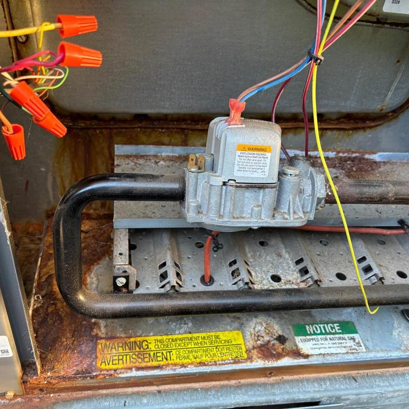 Taylored Air inspected a gas furnace in Lincolnton, North Carolina. The team confirmed steady gas combustion, functional sensors, and properly operating inducer, igniter, and drain components. All systems worked within expected performance levels.