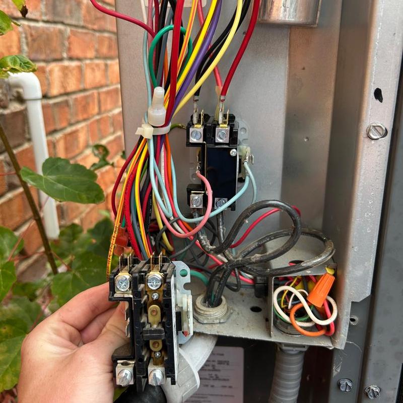 Taylored Air repaired a leak at the pressure switch on a Rheem heat pump in Hickory, North Carolina. The technician sealed the leak and restored the system to working condition. This service ensured the unit operates safely and efficiently.