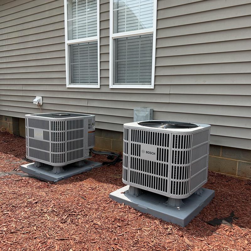 Taylored Air installed a 2-ton Bosch heat pump in Huntersville, North Carolina. The system operates efficiently and supports consistent indoor temperature control.