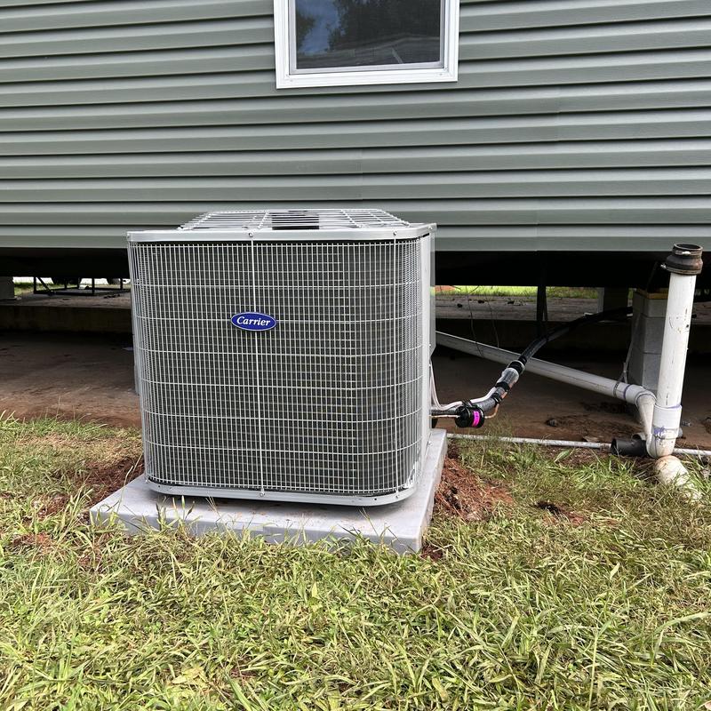 TAYLORED AIR installed a new Carrier heat pump in Gastonia, North Carolina. The team replaced the existing unit to improve heating and cooling efficiency. This installation supports consistent indoor temperatures and energy savings throughout the year.