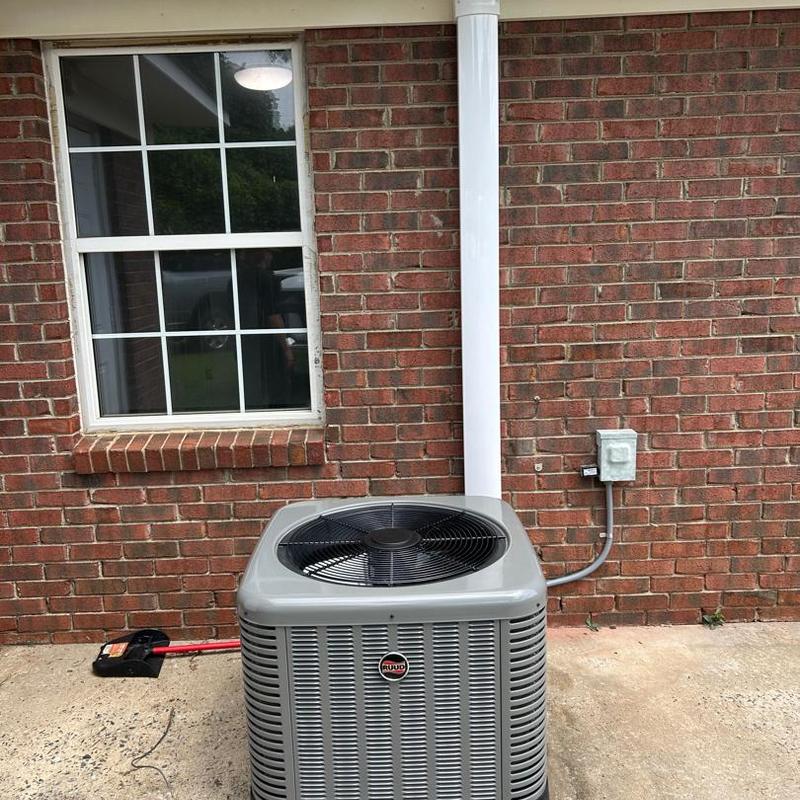 TAYLORED AIR installed a new RUUD heat pump and air handler in Newton, North Carolina. This service improves heating and cooling efficiency by replacing older systems with updated equipment. The installation ensures better temperature control and energy use for the property.