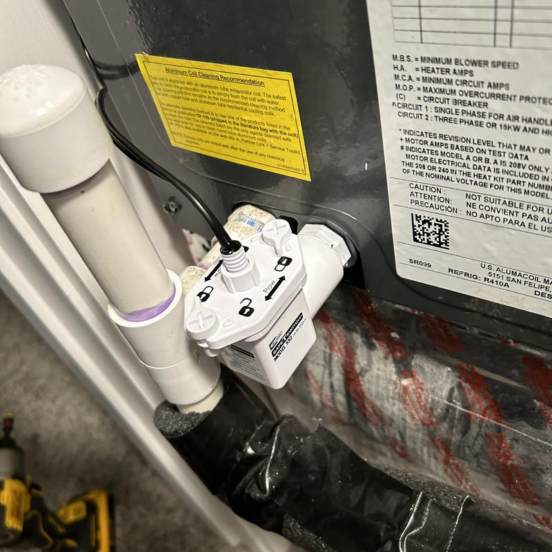 Taylored Air cleared a clogged drain line that was triggering a safety switch. The technician used a nitrogen system to restore normal function. This HVAC service took place in Vale, North Carolina.
