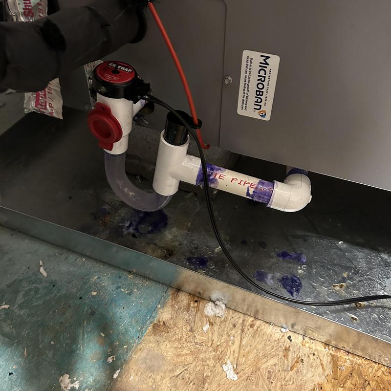 TAYLORED AIR replaced a clogged and overflowing p-trap with a new EZTrap in Lincolnton, North Carolina. The technician inspected the full HVAC system to ensure proper operation. All other components were running correctly after the repair.
