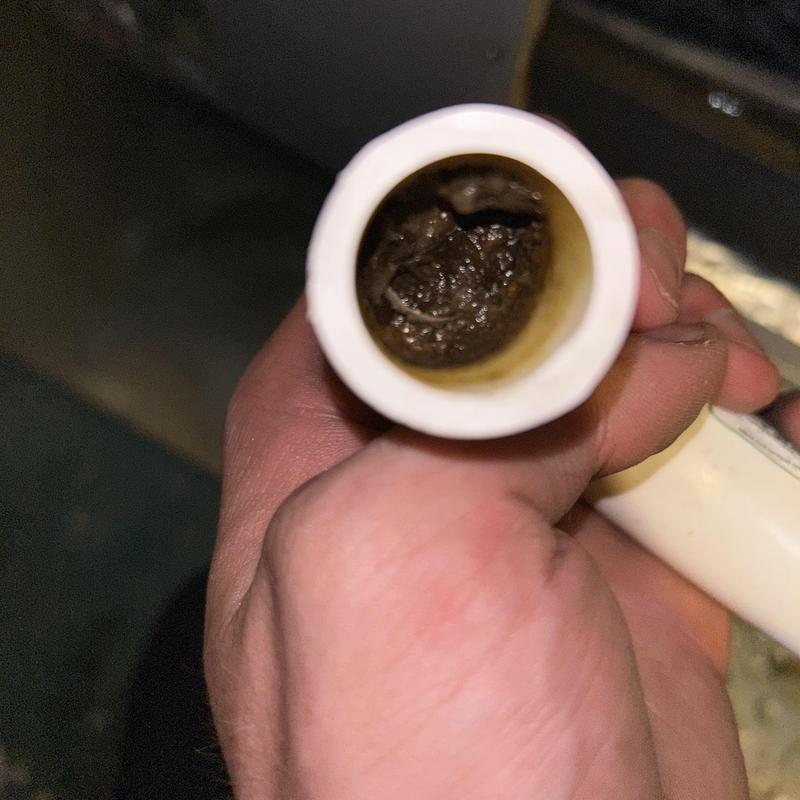 A technician replaced a clogged homemade P-trap with an EZ Trap drainage system in Lincolnton, North Carolina. The new installation resolved the blockage and restored proper drain flow.