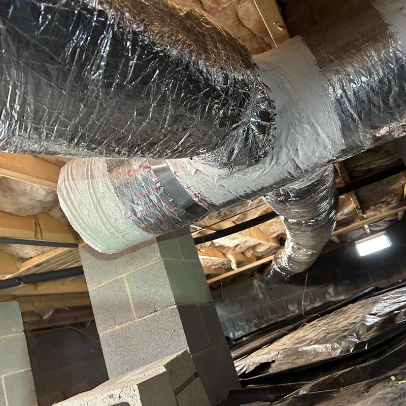 Taylored Air installed two six-inch air ducts in a residential basement in Lincolnton, North Carolina. This ductwork improves airflow and supports better ventilation in the lower level of the home.