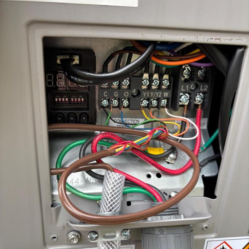 TAYLORED AIR replaced a Duke Energy power limiter in Lincolnton, North Carolina. The technician connected the yellow wire directly to the thermostat wire and securely capped the Duke Energy power connections using wire nuts.