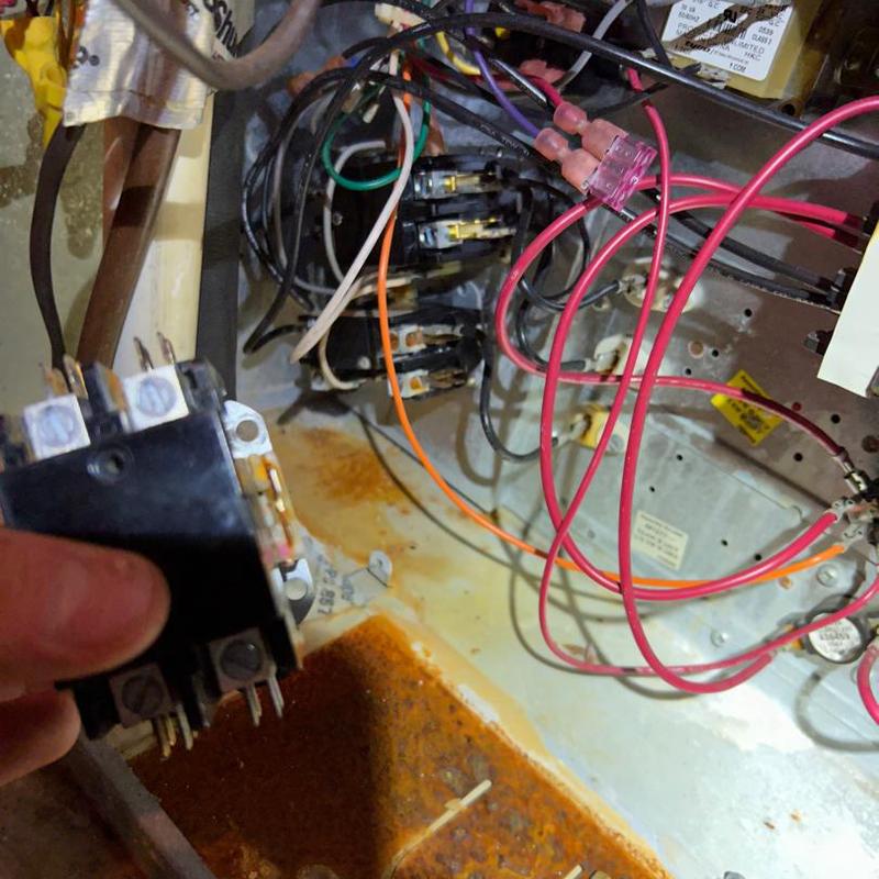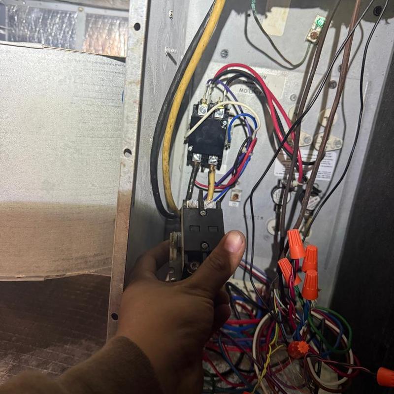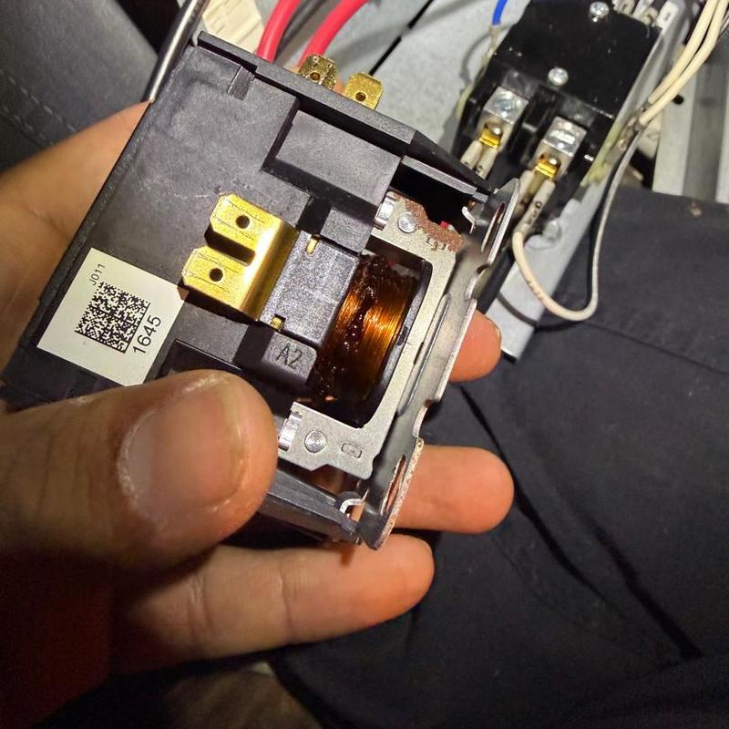 A technician in Cherryville, North Carolina repaired a short cycling heating unit by diagnosing a failed contactor. After replacing the damaged component, the system resumed normal heating operation.