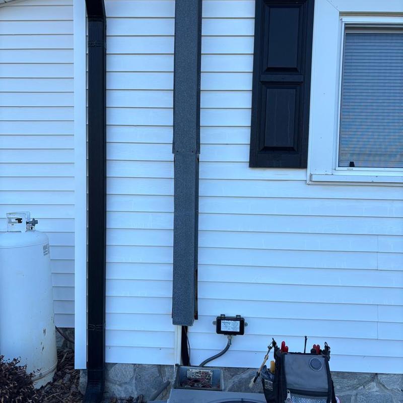 A technician in Lincolnton, North Carolina corrected a furnace issue by draining water from the exhaust and adjusting the pipe. The exhaust was not level, which caused water to collect and the furnace to shut off. The pipe was repositioned to direct water back toward the furnace outlet.