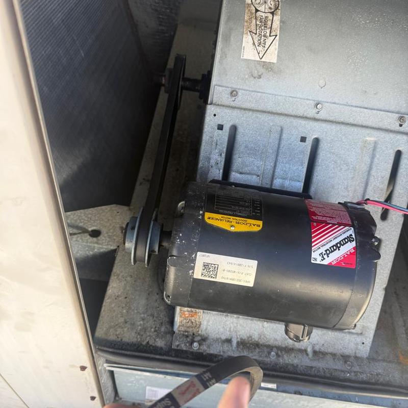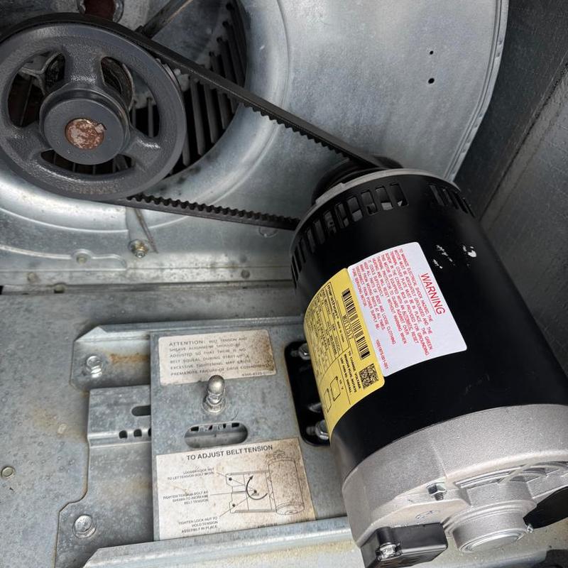 Taylored Air inspected a heating system in Morganton, North Carolina. The technician tested the auxiliary heat, replaced a stretched blower belt, and confirmed proper function with correct amp draws on all motors.