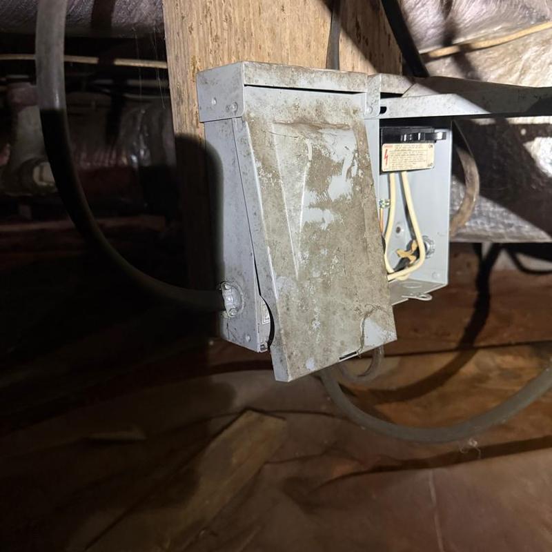 A technician in Lincolnton, North Carolina replaced a burnt disconnect in a crawlspace, restoring stable heating function to the home’s heat pump system during the October heating season.