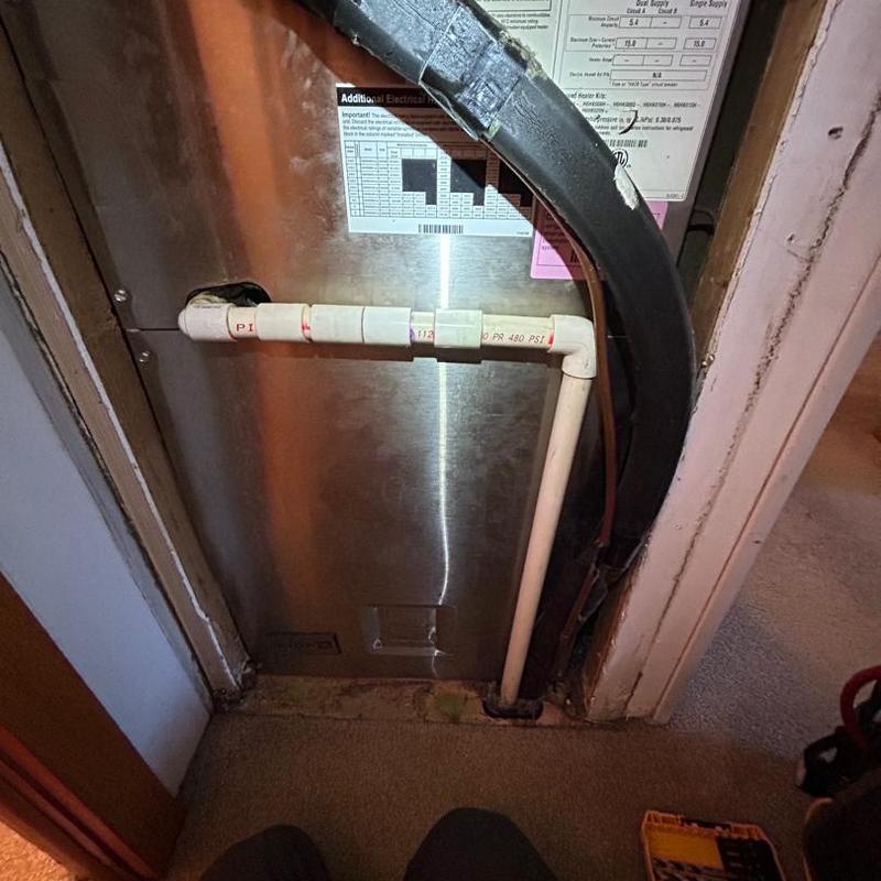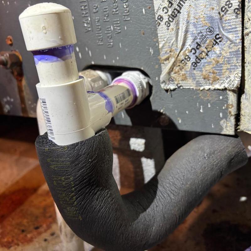 On November 12, 2025, TAYLORED AIR replaced a blocked HVAC drain line featuring a problematic 90-degree angle with a new P-trap in Lincolnton, NC. This repair restored proper drainage, preventing future clogs and ensuring efficient system operation for homeowners.