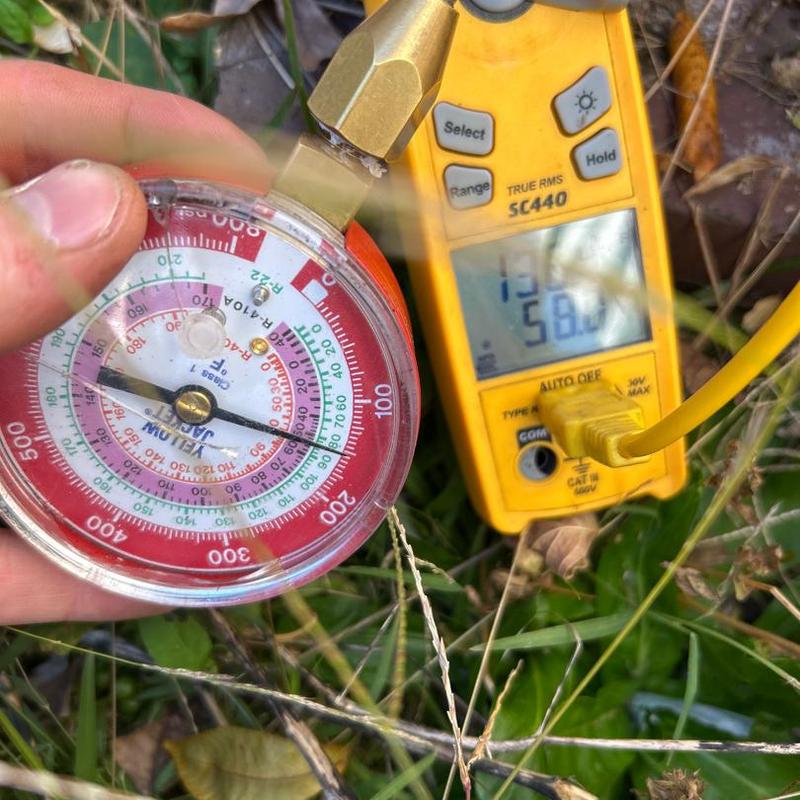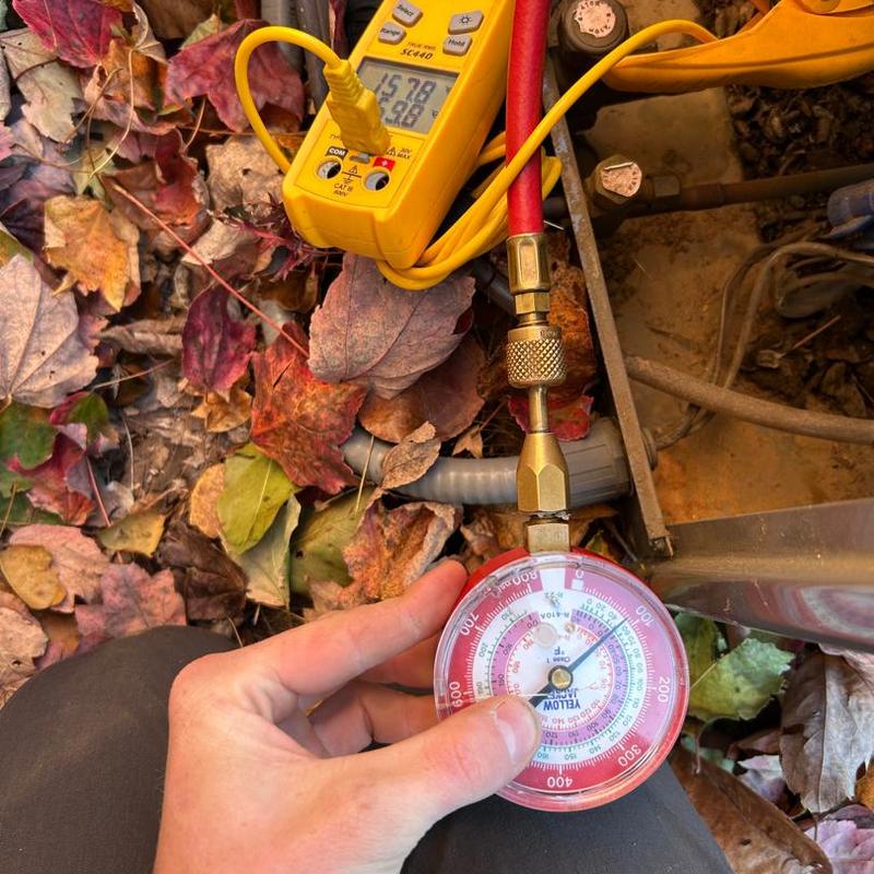 TAYLORED AIR inspected an HVAC system in Lincolnton, North Carolina, confirming proper defrost function and freon levels within the optimal range. This maintenance ensures efficient heating performance during colder months for local homeowners.