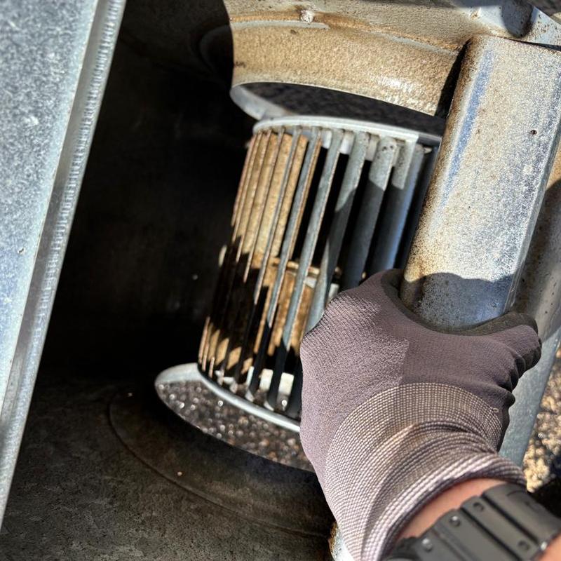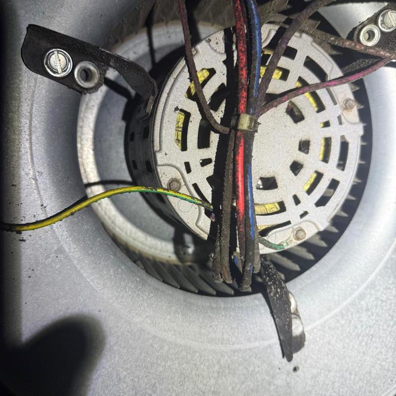 Taylored Air removed a blockage from a blower wheel caused by a mouse in a residential HVAC unit in Huntersville, North Carolina. The technician cleared the obstruction, reinstalled the blower wheel, and confirmed that the system operates correctly.