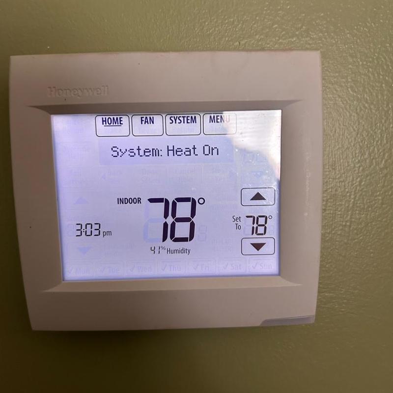 TAYLORED AIR inspected a thermostat in Lincolnton, North Carolina. The system reads the correct temperature and successfully activates the second stage of heating. The unit operates as expected and shows no performance issues.