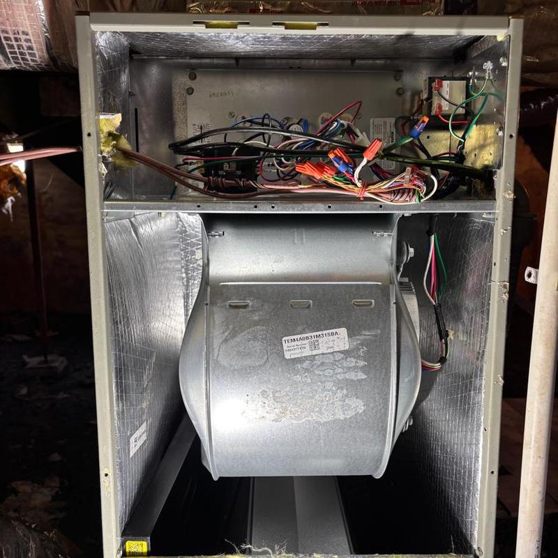 TAYLORED AIR inspected a heating system in Cherryville, North Carolina. The team confirmed proper system function, verified that coils and the blower wheel were clean, and cleared a clogged drain line to maintain efficient operation.