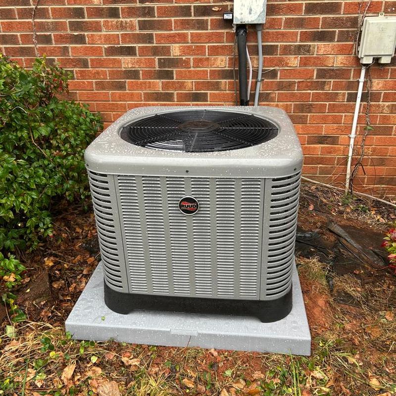 Taylored Air installed a new Ruud heat pump in Lincolnton, NC, ensuring efficient year-round residential heating and cooling with optimized energy use and improved indoor comfort for local homeowners.