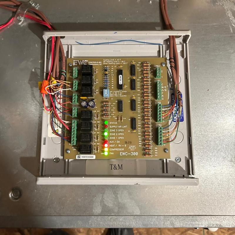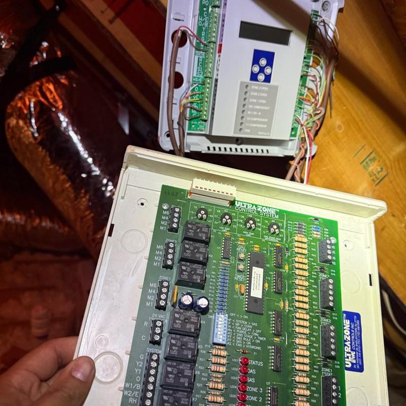 A technician from TAYLORED AIR corrected mixed-up zone wires on the thermostat and module in Newton, North Carolina. The service restored proper communication between components, ensuring accurate zone control for the HVAC system.