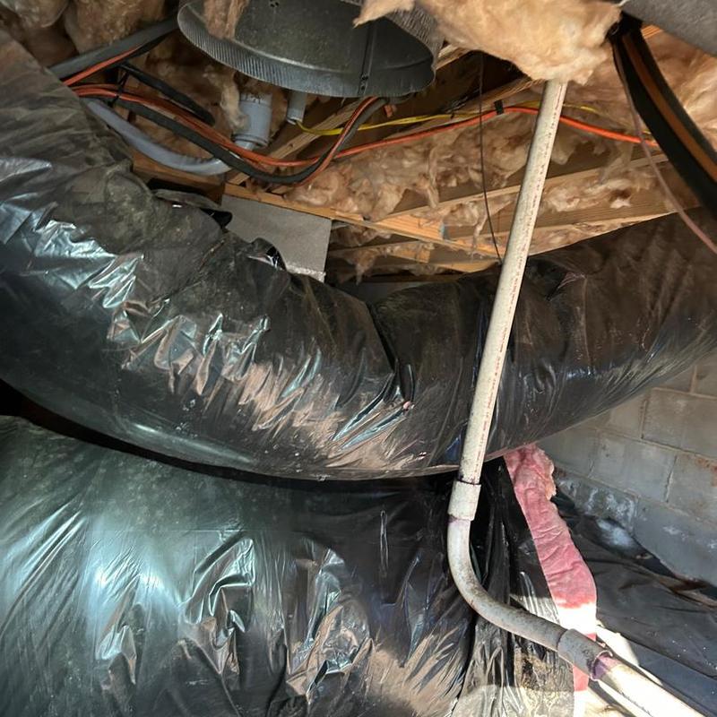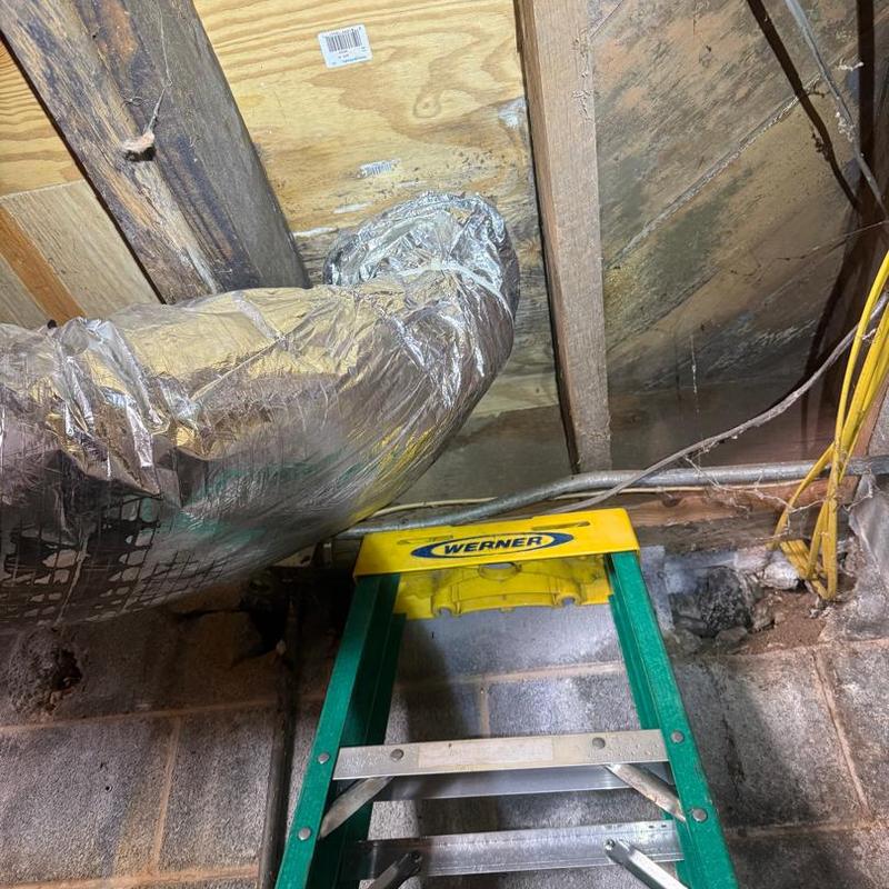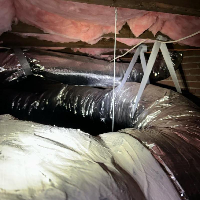 A technician in Lincolnton, North Carolina strapped up three fallen ducts in a crawlspace. The heating system resumed working efficiently after the repair.