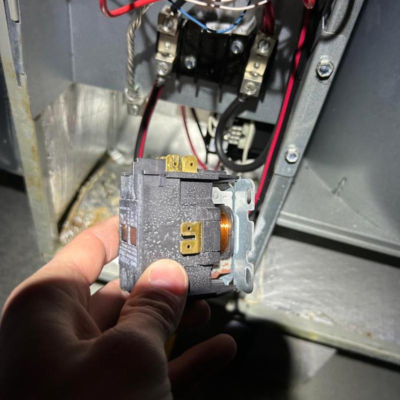 A technician in Lincolnton, North Carolina replaced a faulty contactor that was backfeeding low-voltage into the relay. This issue caused the system relay to chatter and shut down. After installing the new contactor, the system resumed normal operation without interruptions.