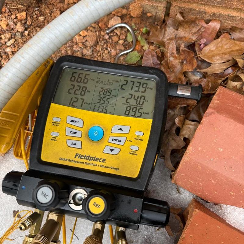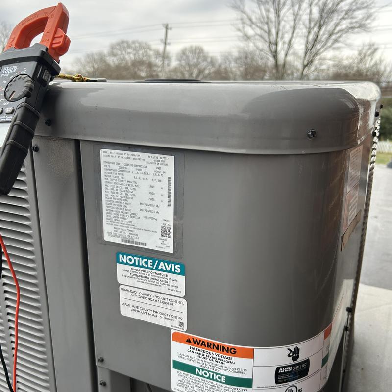 Taylored Air inspected an HVAC system in Newton, North Carolina. The technician confirmed the outdoor unit cycles correctly, the amp draw is stable, and refrigerant levels are within normal range. The system is functioning as expected.