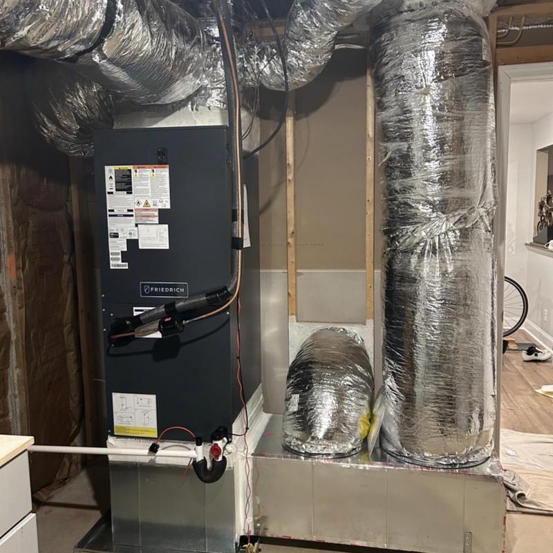 TAYLORED AIR installed a Friedrich inverter heat pump system and rerouted HVAC returns to maximize utility closet space. The efficient system enhances energy savings and comfort. Service completed in Lincolnton, NC.