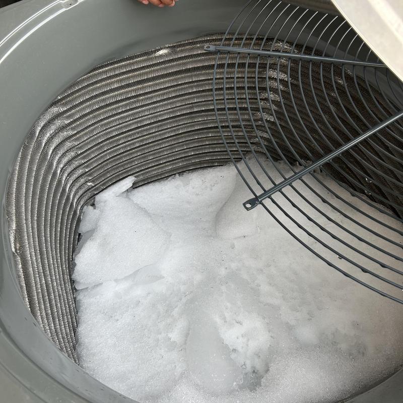 A technician in Shelby, North Carolina cleared snow and ice from a Trane HVAC system that had stopped functioning. The build-up had blocked operation. After removing the obstruction, the system resumed normal performance.