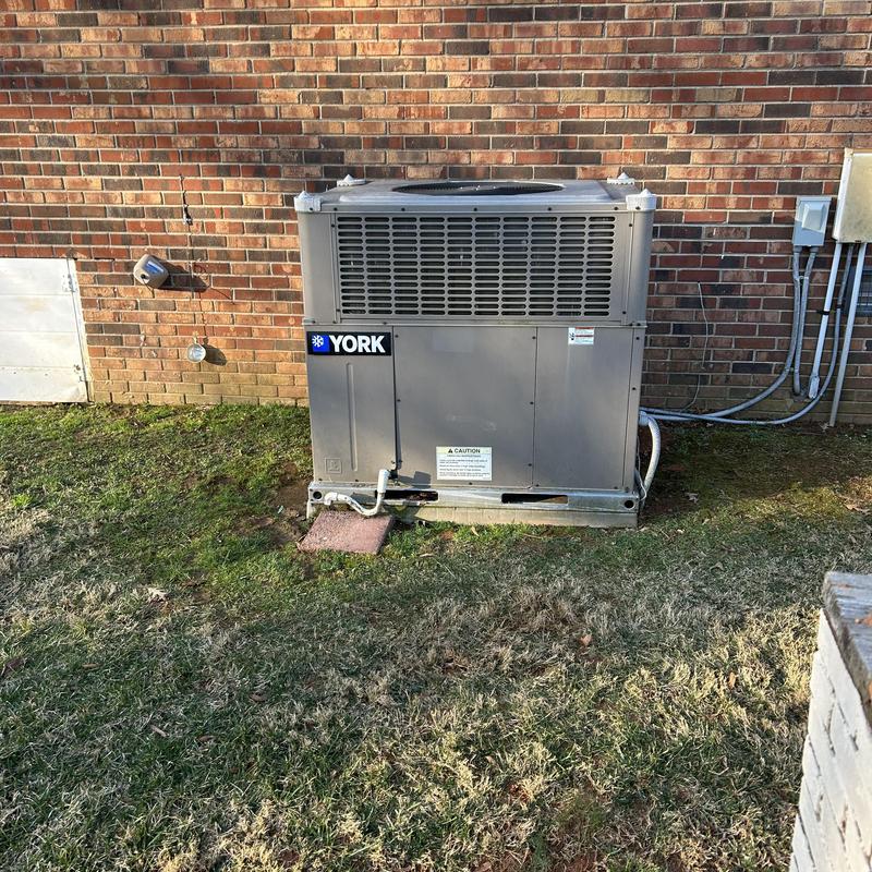 Replaced a faulty compressor on a York package heat pump system in Lincolnton, NC. Tested system pressure, performed a vacuum pull, and recharged with refrigerant. The system is now operating correctly.
