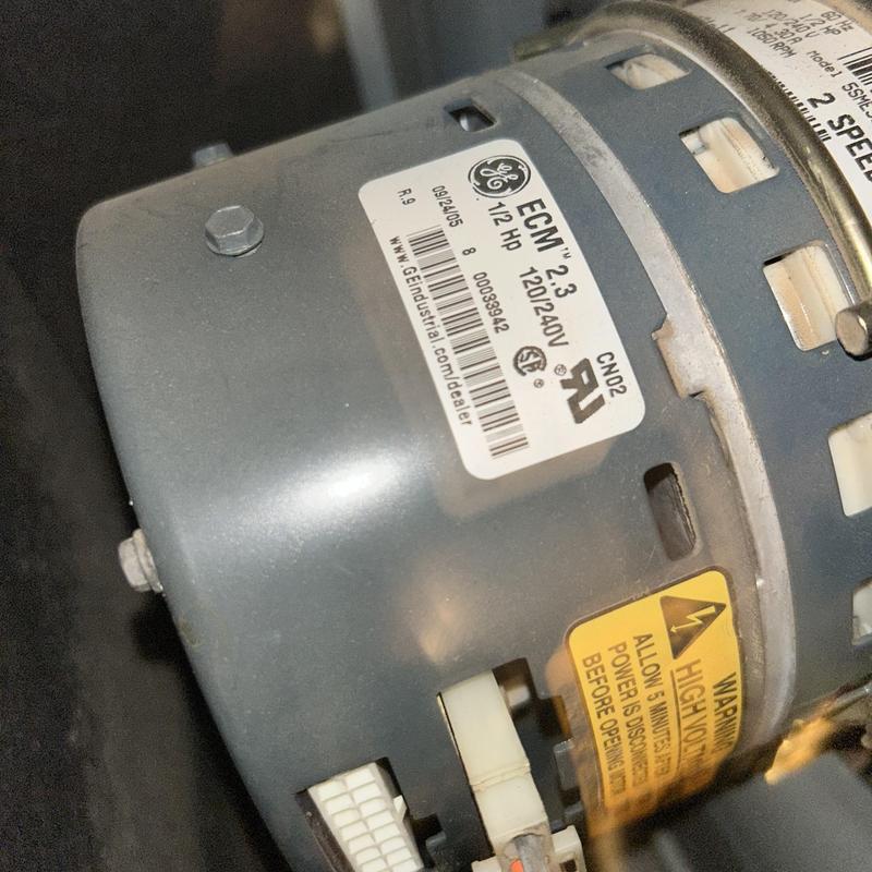A technician inspected a variable-speed blower in Gastonia, NC, and found a faulty motor causing instability. A follow-up was scheduled to check part availability and complete the repair.