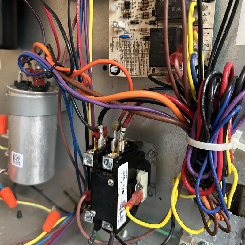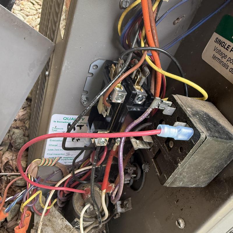 A technician replaced a faulty contactor that prevented an outdoor AC unit from powering the compressor. The system resumed proper cooling after the repair. This HVAC service took place in Lincolnton, North Carolina.