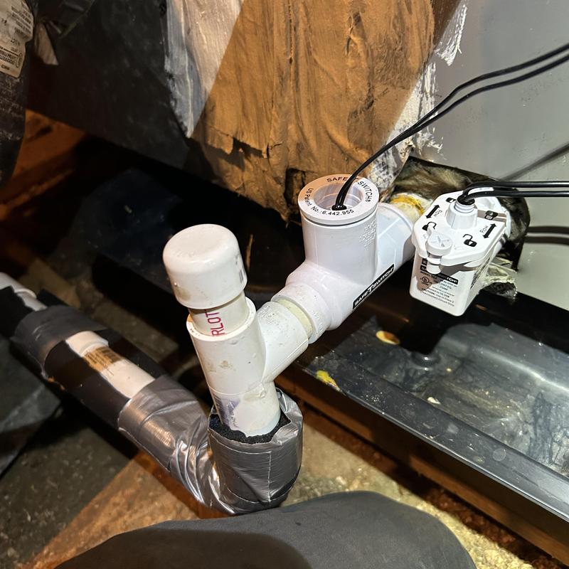 Taylored Air replaced a clogged drain P-trap with an EZ-trap and wired a float switch for a condensate pump. The technician tested the system to ensure proper function. This HVAC service took place in Lincolnton, North Carolina.