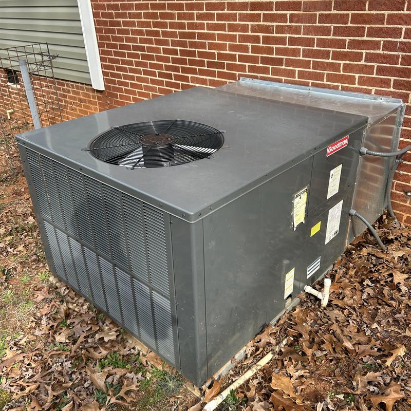 Taylored Air inspected a Goodman package unit in Lincolnton, NC. The system is operating correctly. A surge protector is recommended for the outdoor unit to help prevent electrical damage.