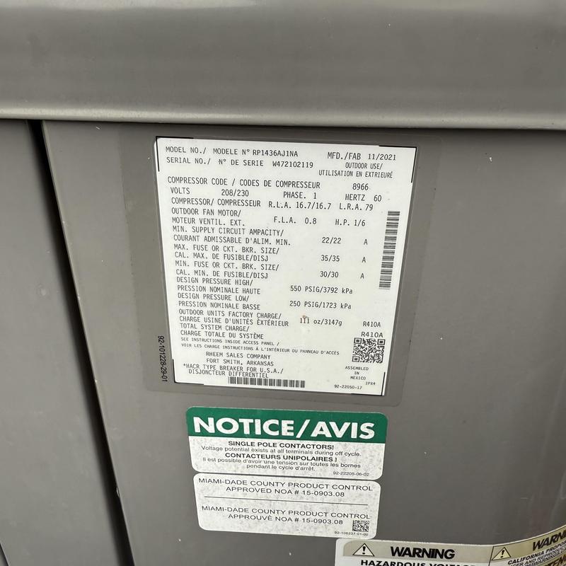 TAYLORED AIR installed a 3.5-ton Ruud heat pump and air handler in Jacksonville, Florida. The system operates correctly and provides efficient heating and cooling for the home. This installation ensures reliable indoor climate control using modern HVAC equipment.