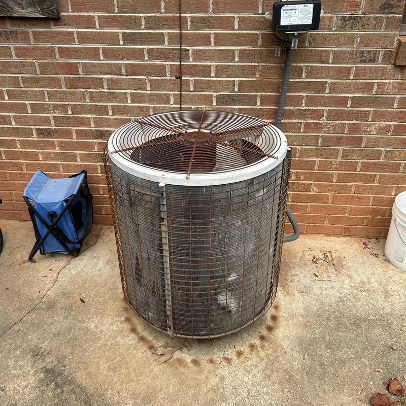 Taylored Air inspected an AC system in Lincolnton, North Carolina. The unit was not cooling due to low refrigerant. After evaluating the system's age and repair costs, the team recommended a complete system replacement to ensure reliable performance.