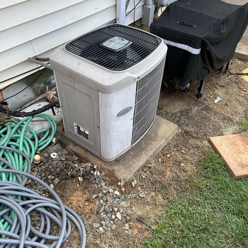 Taylored Air completed spring maintenance on a Carrier air conditioning unit in Lincolnton, North Carolina. The technician replaced a pitted contactor and confirmed the system is operating correctly. This service ensures the unit runs safely and efficiently ahead of the warmer season.