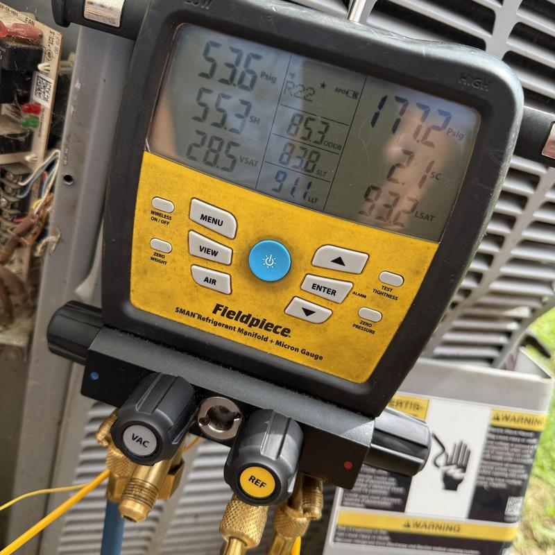 An HVAC technician in Lincolnton, North Carolina diagnosed a cooling issue. They added 12 ounces of R-410A refrigerant and adjusted the fan speed to improve airflow. These changes restored proper temperature control and improved system performance during daytime heat.