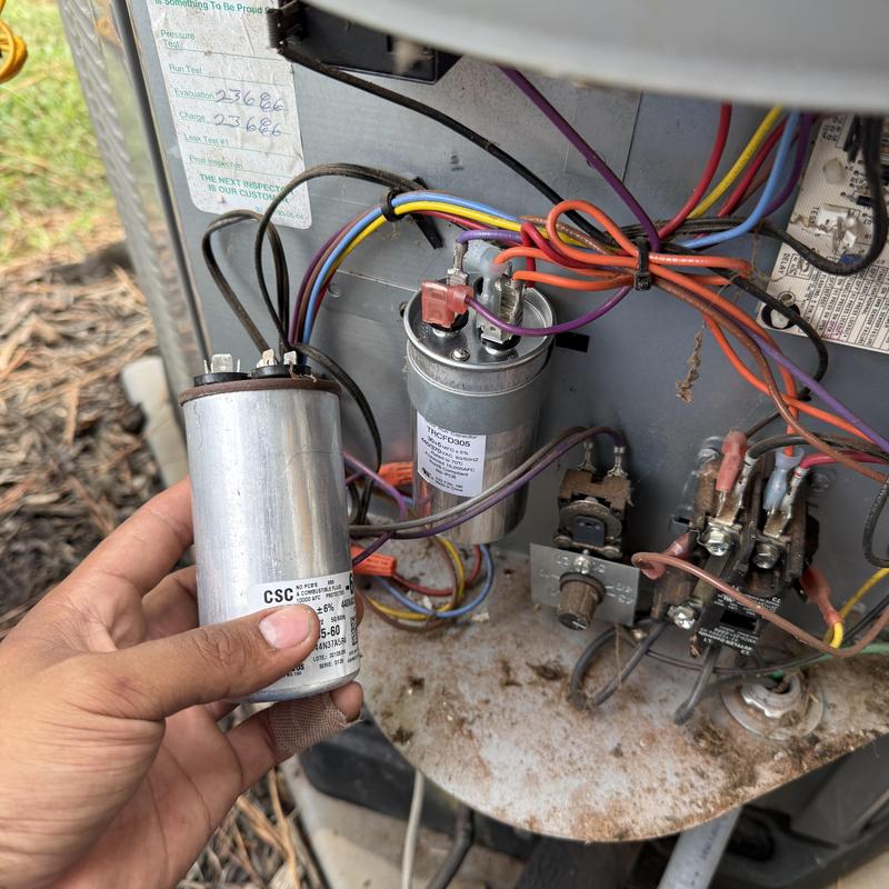 Taylored Air replaced a faulty capacitor in an outdoor AC unit that was not running in Lincolnton, North Carolina. The repair restored proper system cooling.